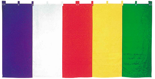 白地の幕には顔料染めか本染めでの製作となります。 地染めの幕には本染めで製作となります。 テトロンツイル・ポリエステルちりめんの化繊素材に分散染料で染めることによって